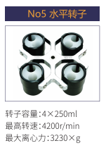 No5 | 水平轉子 | 4x250ml | 4200r/min | 3230xg |